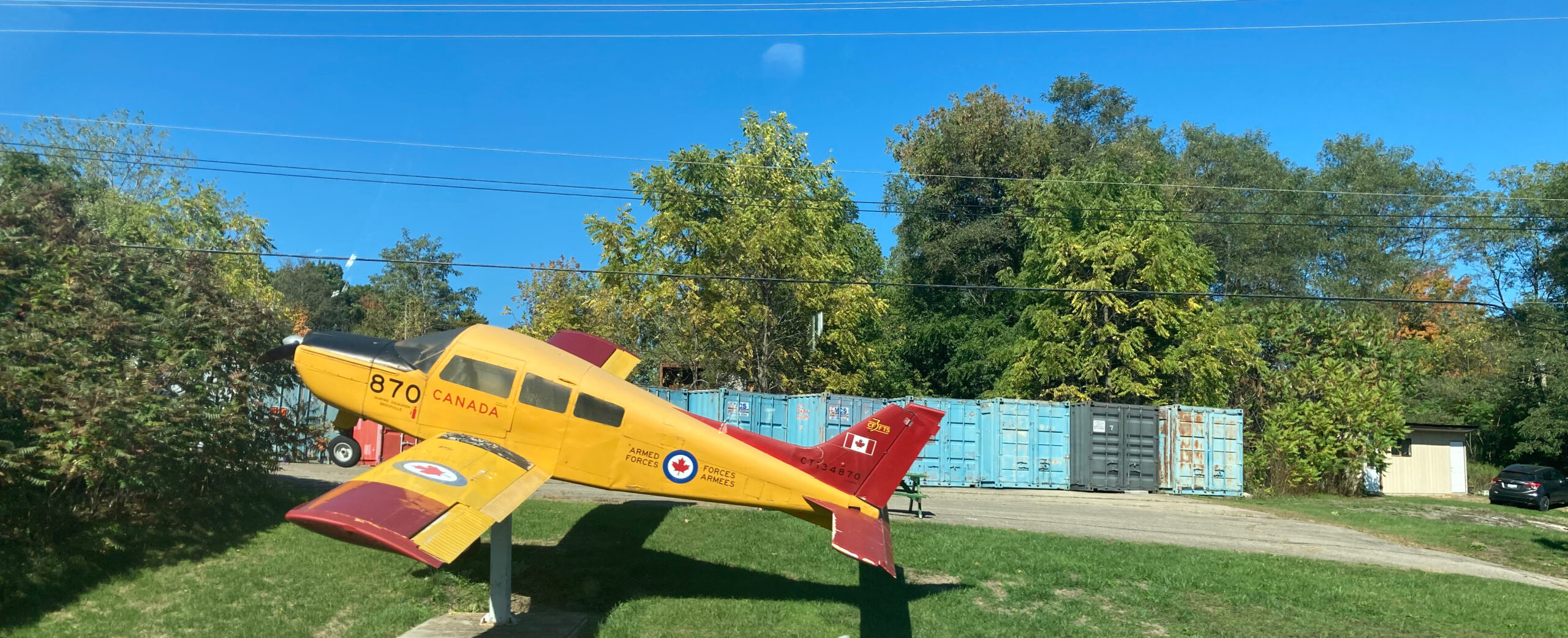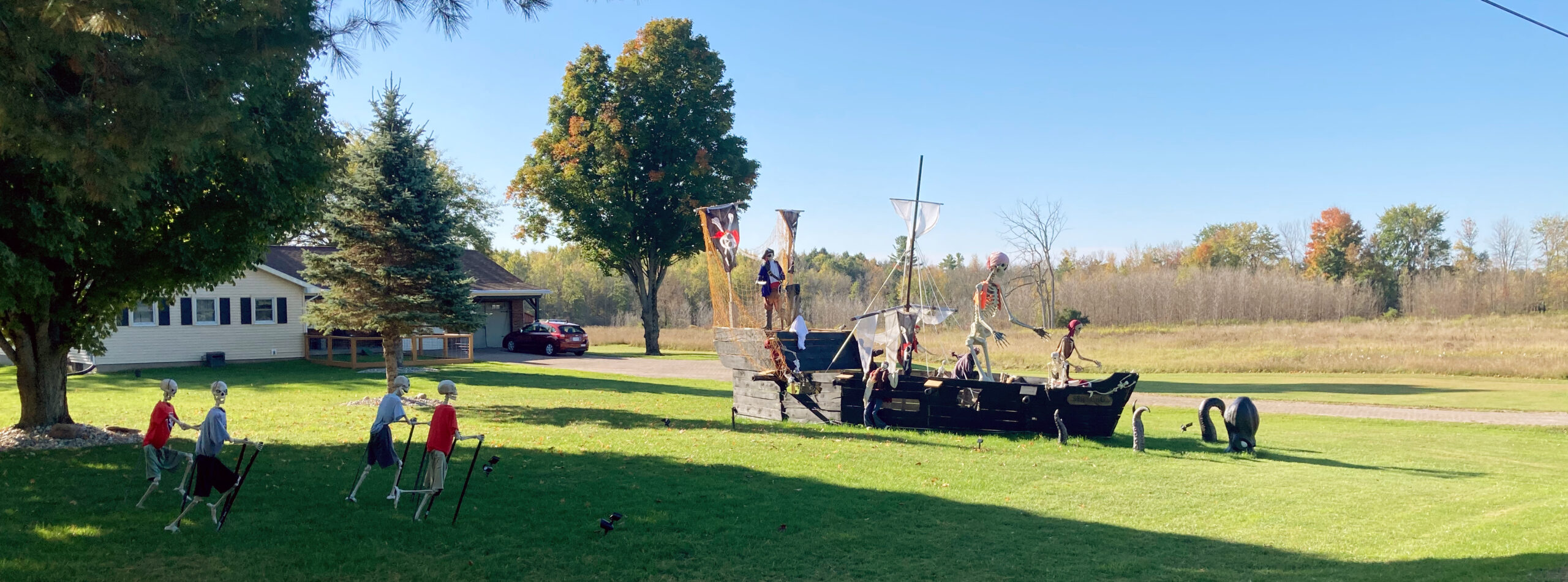 Statt direkt zur kanadischen Grenze zu fahren, machen wir einen kleinen Umweg zu einer Jeep Werkstätte, etwa 15 Minuten entfernt. Kurz bevor wir ankommen springt Babsy kurz aus dem Auto, um ein Piratenschiff voll von Skeletten und einen Kraken abzulichten.