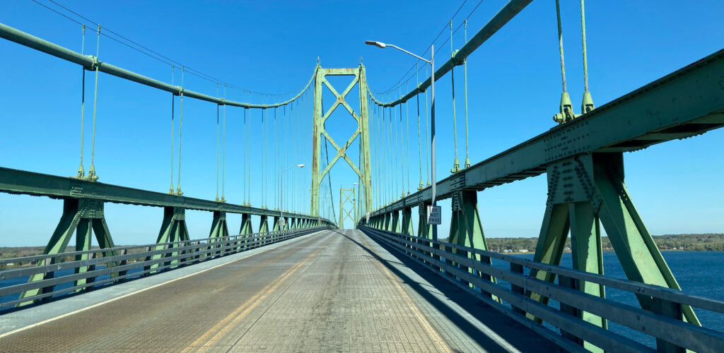 Die USA und Kanada werden hier vom St. Lorenzstrom voneinander getrennt. Um auf die andere Seite zu gelangen, muss man über eine Mautbrücke fahren.