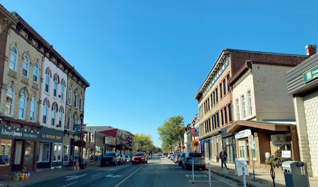So fahren wir die ersten Meter auf kanadischem Boden durch Prescott, der rote LKW direkt hinter uns her.