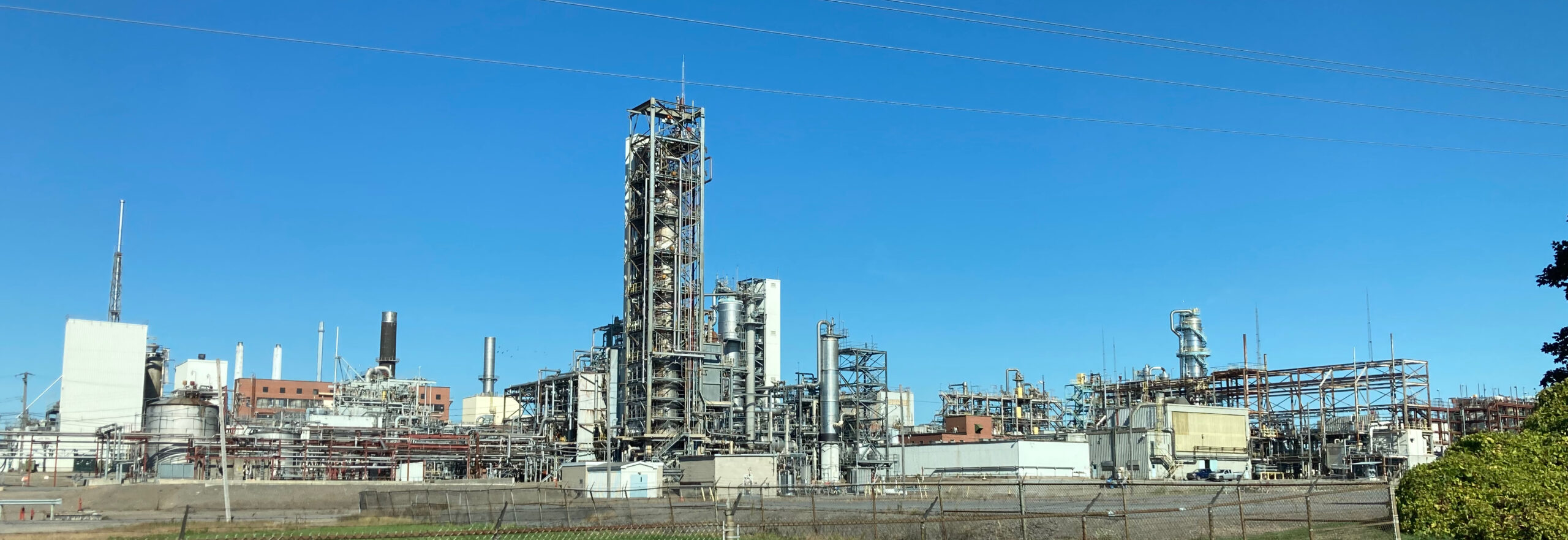 Vorbei an Industrieanlagen, Docks und einer Raffinerie geht es direkt neben dem St. Lorenzstrom nach Westen. Hier verlässt uns der rote Begleiter durch das Einfahrtstor zu einer Fabrik.