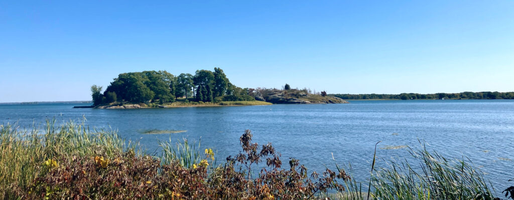 Auf einem keinen Parkplatz vertreten wir uns die Füsse und stehen direkt am Fluss, in dem es unzählige kleine Inseln gibt, etliche sind bewohnt, meist steht nur ein einziges Haus auf ihnen. Deshalb heißt die region auch Thousand Isands. Tatsächlich sind es 1.864 Inseln, wobei eine Insel folgende Anforderungen erfüllen muss: Sie muss ganzjährig über Wasser liegen und mindestens zwei Bäume haben.