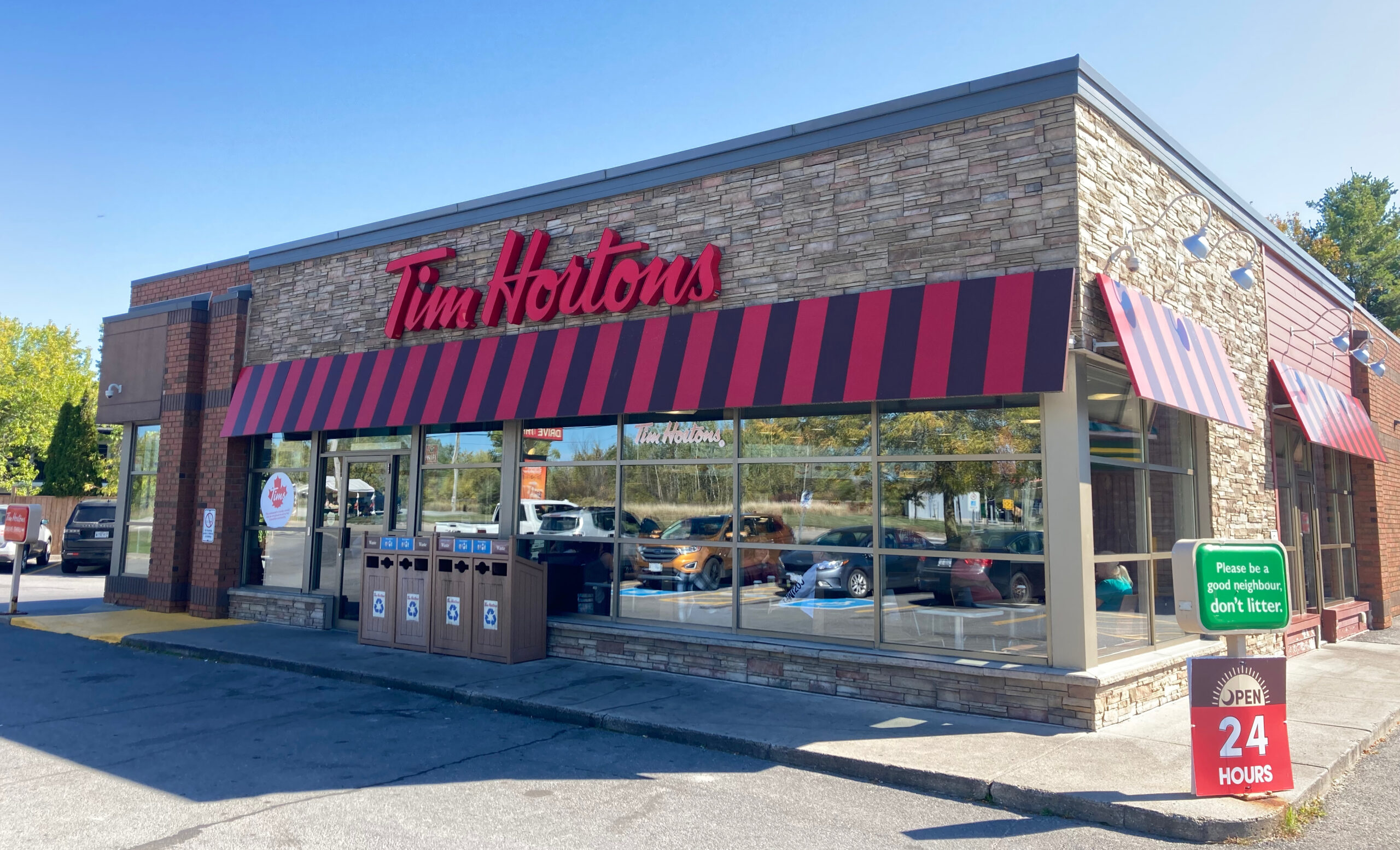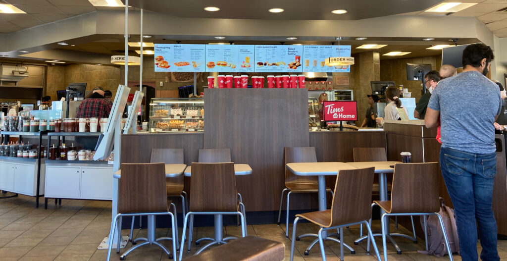 Wir erreichen die Stadt Kingston und machen kurz Stop bei Tim Hortons. Die Fastfood-Kette hat sich vor allem auf Kaffee und Früstück spezialisiert, sozusagen der kanadische Mc Cafe, nur mit einem weitaus größerem Angebot.