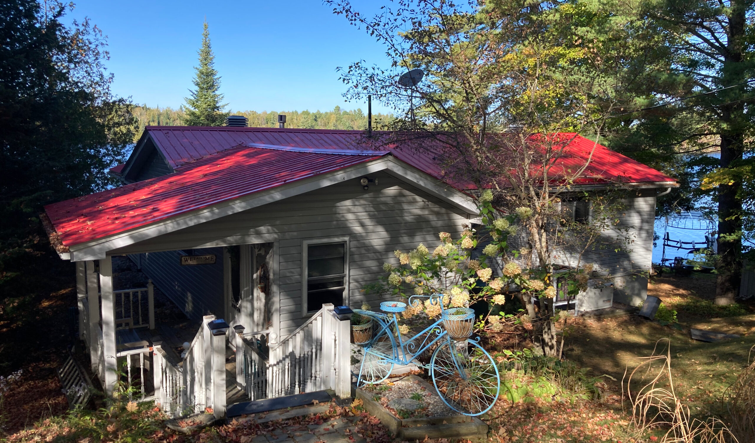 Weit abseits der Hektik und Zivilisation werden wir ein paar Tage in diesem Haus am Sharbot Lake verbringen, Kajaks und große Terrasse inkludiert.