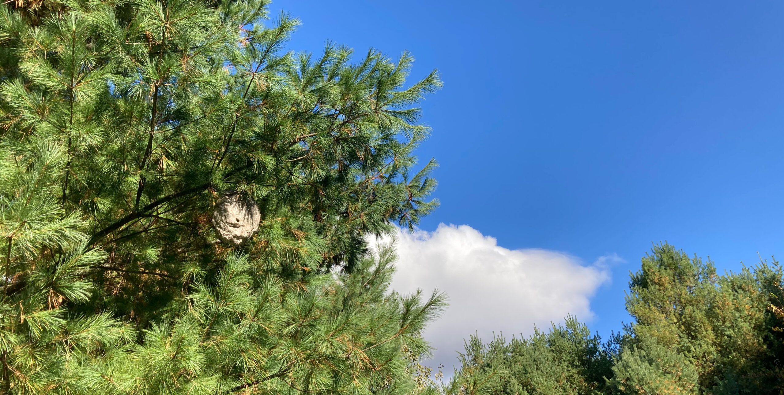 Aber diesen Trail haben wir gefunden. Am Parkplatz hängt ein riesiges Wespennest direkt über unserem Auto. Still und leise bewegen wir uns weg. Am Beginn der meisten Wanderwege gibt es eine Tafel mit einer kurzen Zusammenfassung und den Gefahren, die auf einen warten können. Dieser Wanderweg führt nur zu einem Zeltplatz im Wald, also beschließen wir ihn auszulassen. Auf der Tafel ist ein Autoschlüssel und ein Schlafsack aufgehängt, wer die wohl vergessen hat?