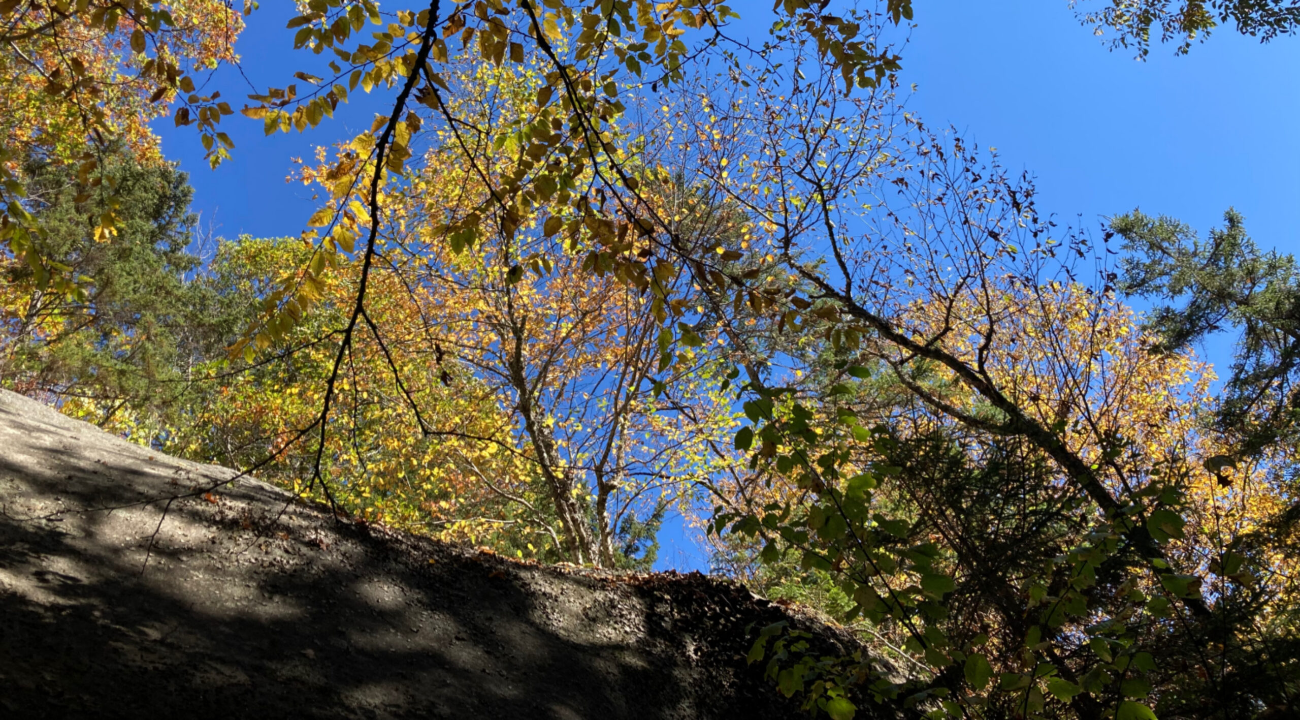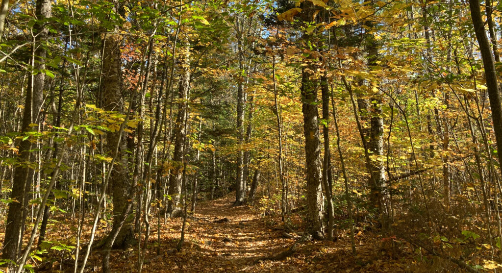 Wir sind alleine auf dem Trail und es ist wunderbar ruhig. Das einzige das man hört ist das Rascheln der Eichhörnchen, die auf der Suche nach Wintervorräten durch das Laub springen.