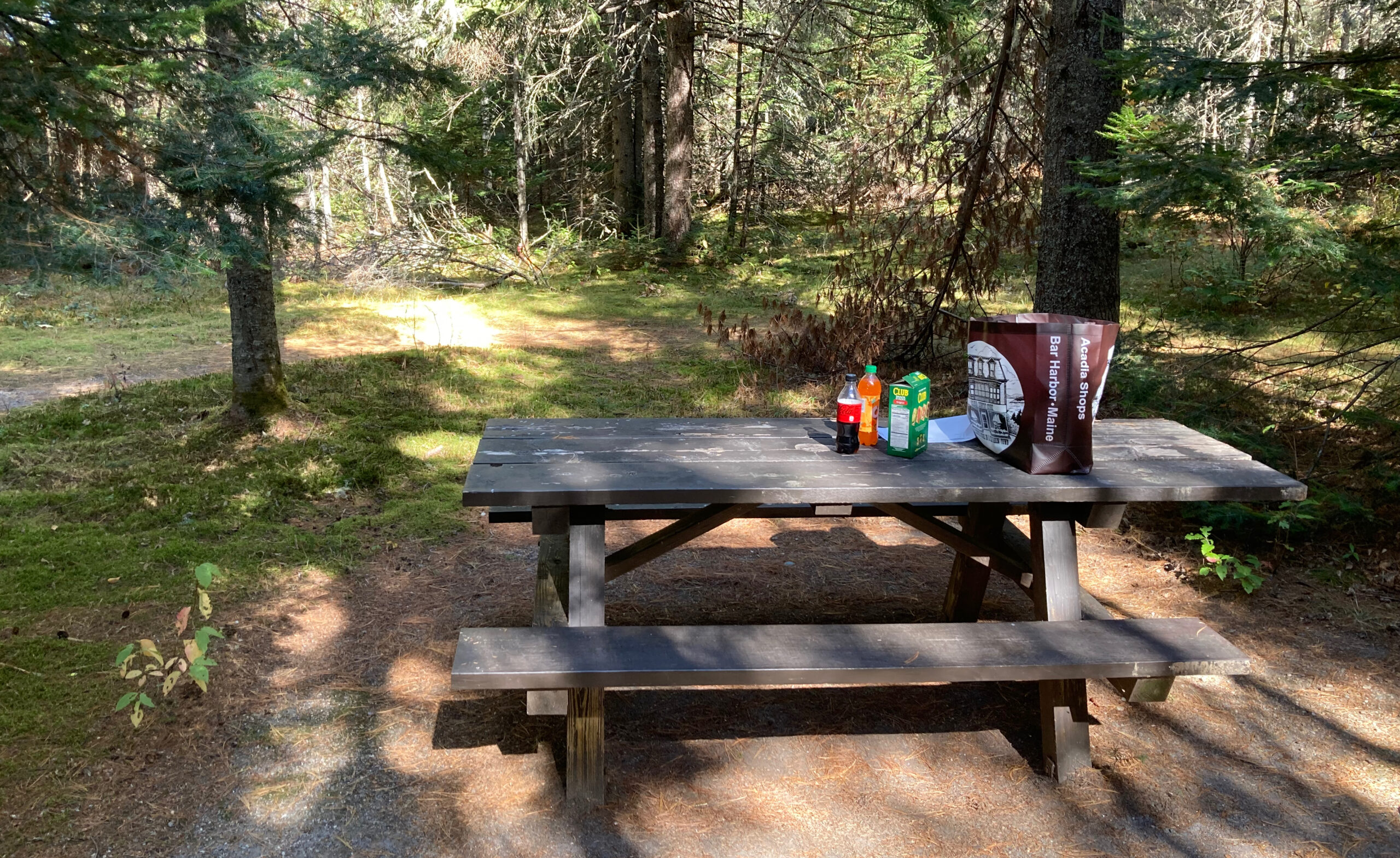 Es ist Zeit für eine Stärkung und wir suchen uns einen Tisch für unser kleines Picknick. Äpfel, Käse und Cracker, sowie ein gefülltes Baguette stärken uns für die nächsten Abenteuer.