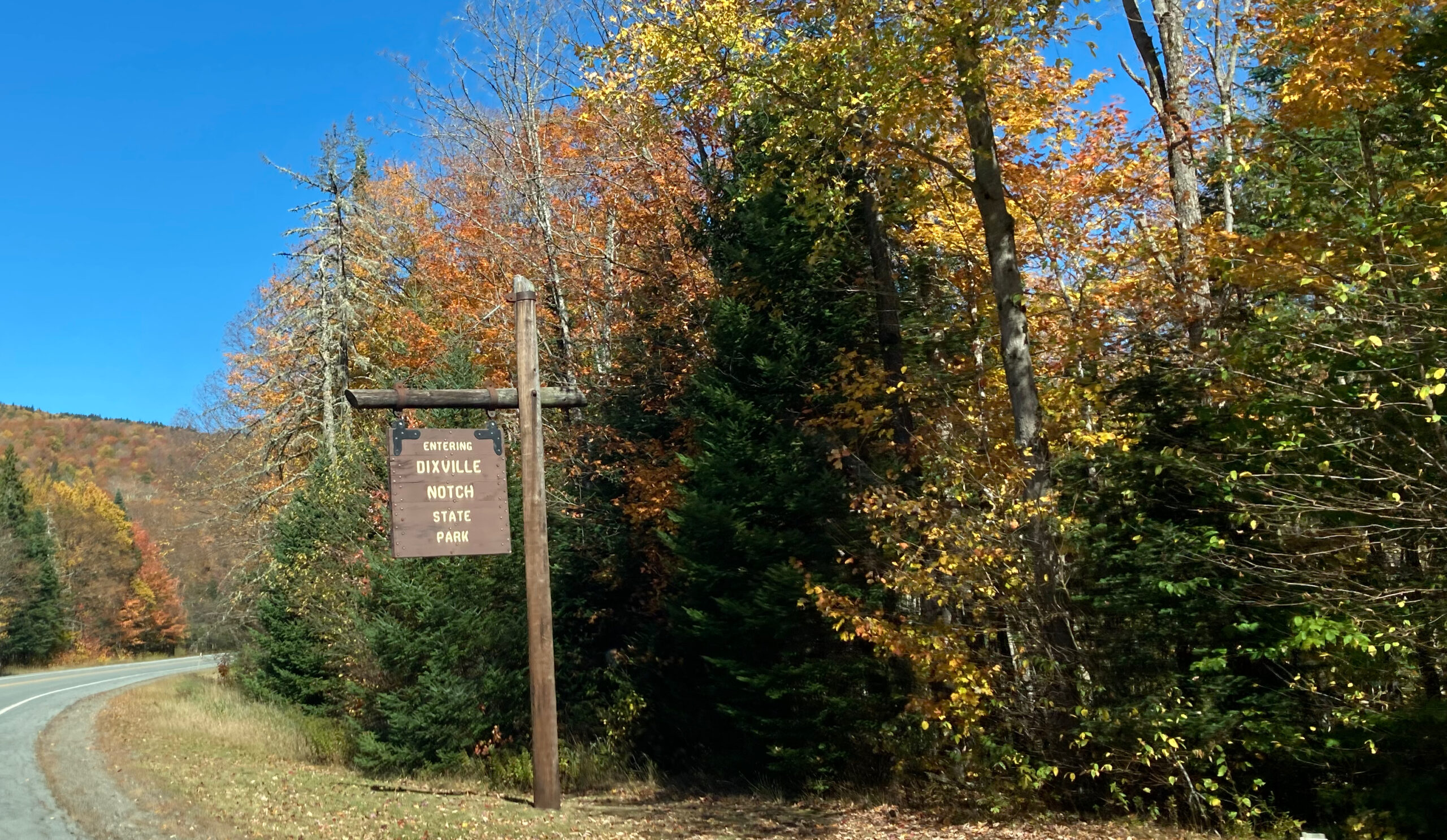 Wir queren die County Road 16 und fahren weiter zum Dixville Notch State Park. Wir haben uns davon etwas mehr erwartet. Er ist leider schlecht beschildert, was wir auch an den anderen Autos bemerkt haben. Ständig bleiben sie am Straßenrand stehen und die Leute versuchen herauszufinden, wo denn hier etwas zu entdecken ist, drehen um und suchen weiter.