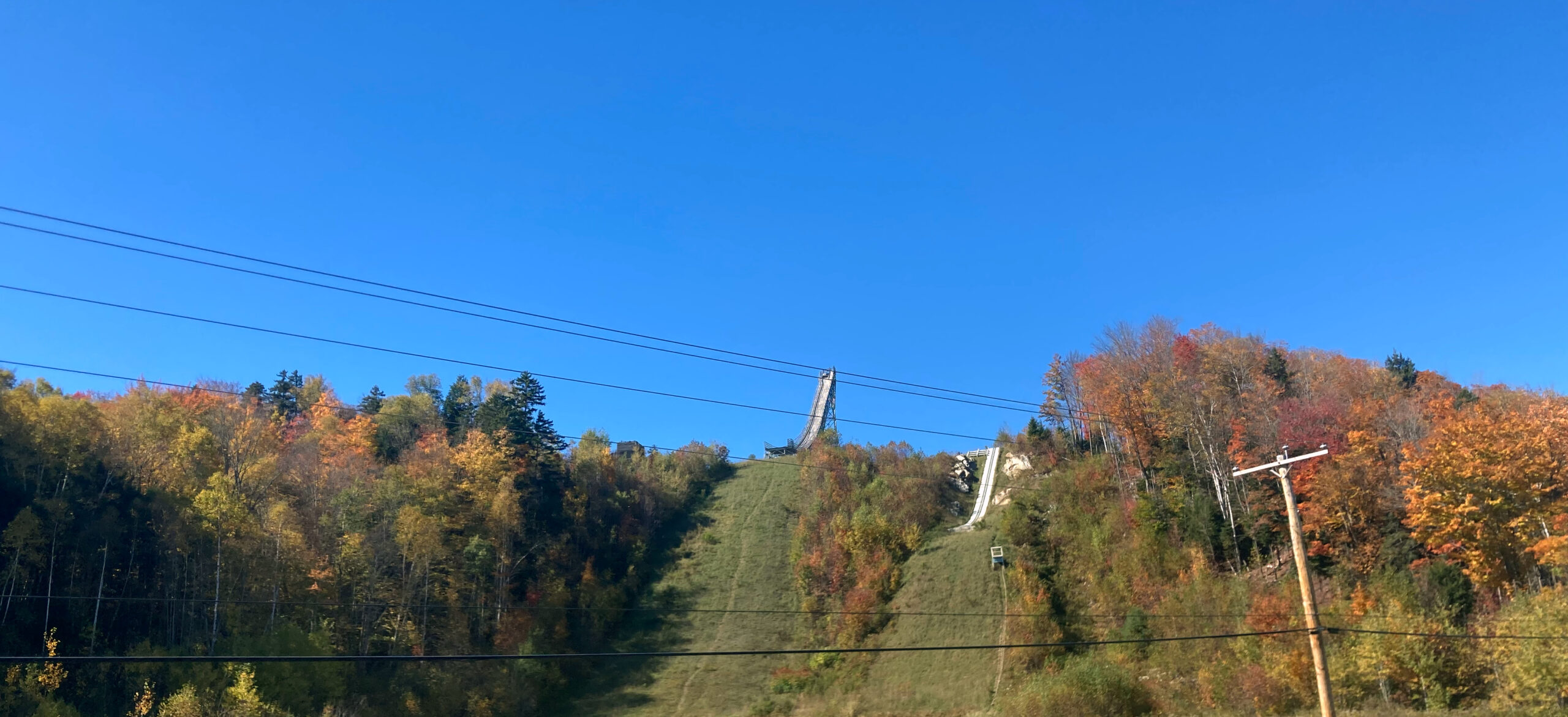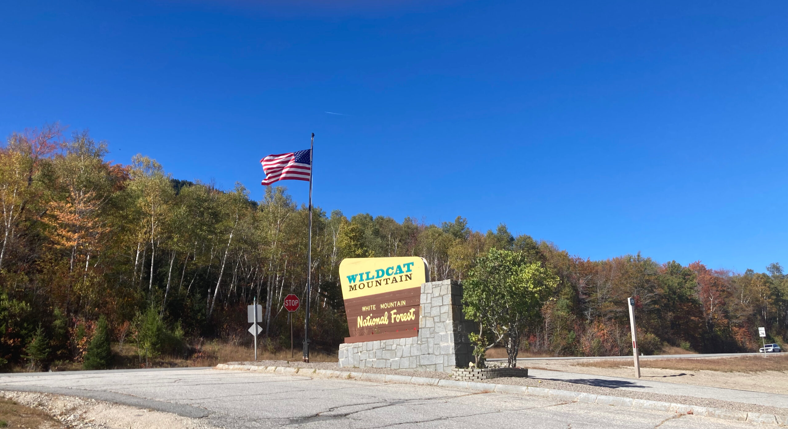 Wir kommen an der Talstation des Wildcat Mountain vorbei. Von hier gehen mehrere Lifte auf die Hänge. Noch ist der Parkplatz leer und alles steht still.