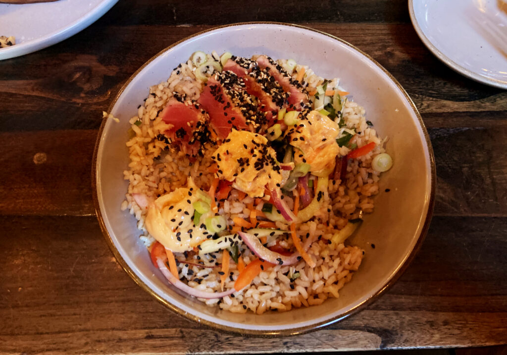 Arnos Experiment ist die Reisbowl mit Thunfisch, sehr fein! Ein Gericht, das wir nachkochen werden.