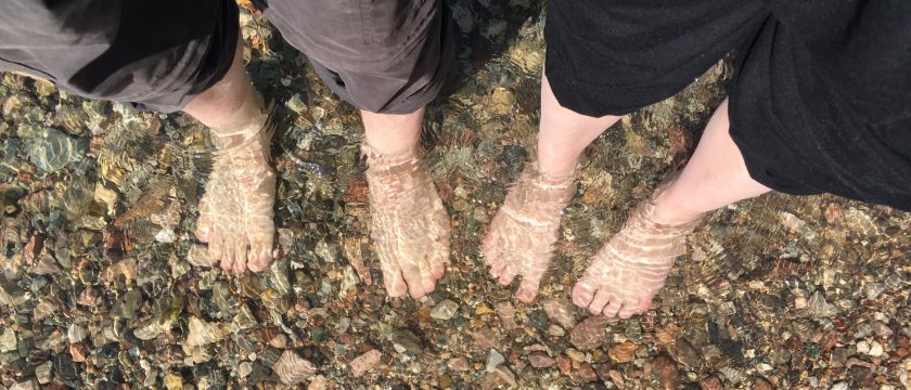 Der Fluß wird hier von Fischern gerne genutzt und so treffen wir eine Familie, die schon früh morgens ihre Haken ins Wasser hängt. Kurz die Füsse ins Wasser und weiter gehts.