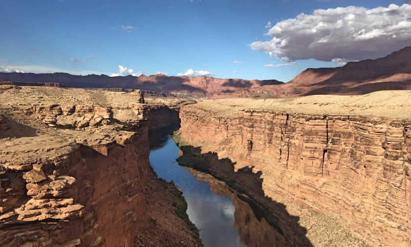 Der Blick von der Navajo Bridge in die Tiefe offenbart den Colorado River auf seinem Weg in den Grand Canyon.