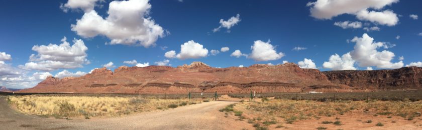 Hier ist eine der Stellen, an denen man hinunter zum Colorado gelangt – Lee’s Ferry heißt der Platz, einer der frühesten Möglichkeiten den Fluß zu überqueren. Auf dem Weg dorthin steht ein Fels, den wir als Notre Dame Rock bezeichnen würden.
